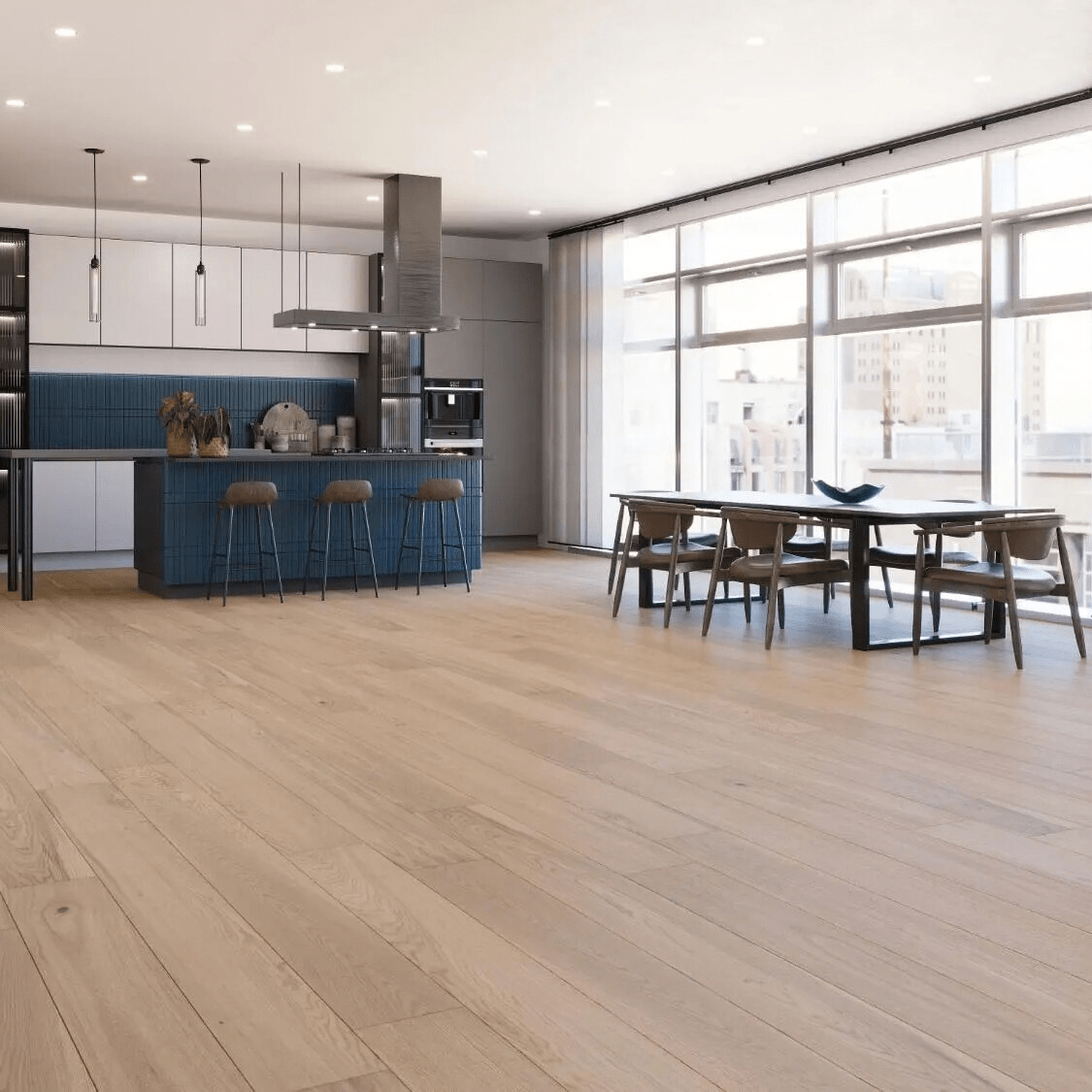haut de gamme. Fabriqué avec une structure 3 plis de qualité supérieure, chaque planche se distingue par ses dimensions généreuses : 9/16″ d’épaisseur, une largeur de 7 ½ » et une longueur de 74,8″. Ce format allongé met en valeur le grain naturel du bois et crée une impression de grandeur et de continuité dans la pièce. Les planches sont micro-biseautées sur les quatre côtés. Le plancher peut être installé de trois façons : flottant, collé ou cloué, selon les besoins du chantier. La collection San Marino convient à tous les étages, du sous-sol jusqu’au dernier niveau. Le fini brossé mat, accompagné d’un vernis à l’oxyde d’aluminium à 10° de brillance, révèle délicatement la texture du chêne tout en offrant une protection accrue contre l’usure quotidienne.